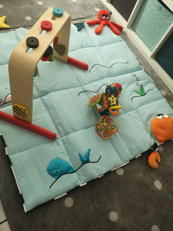 Ainsi,mon espace est pensé pour que les enfants puissent s’asseoir, ramper, bouger, découvrir et jouer en toute sécurité.